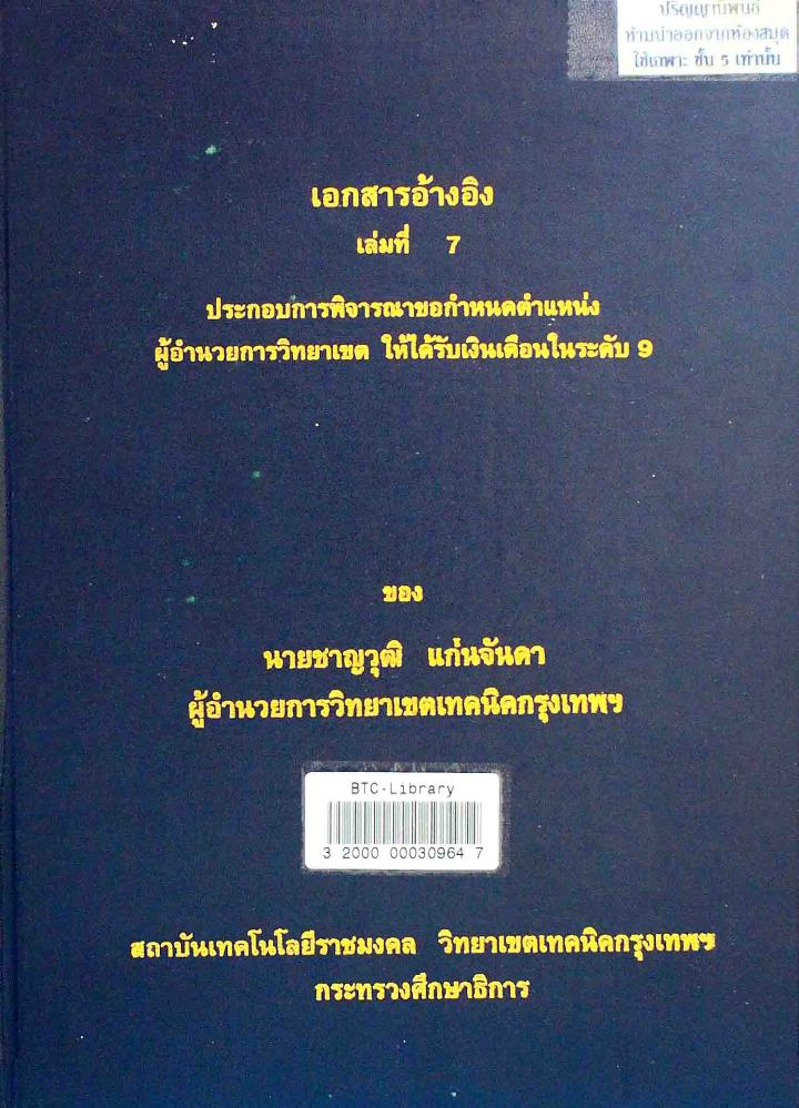Page 1 - เรื่อง เอกสารอ้างอิง เล่มที่ 7 ประกอบการพิจารณาขอกำหนดตำแหน่งผู้อำนวยการวิทยาเขต ให้ได้รับเงินเดือนในระดับ 9